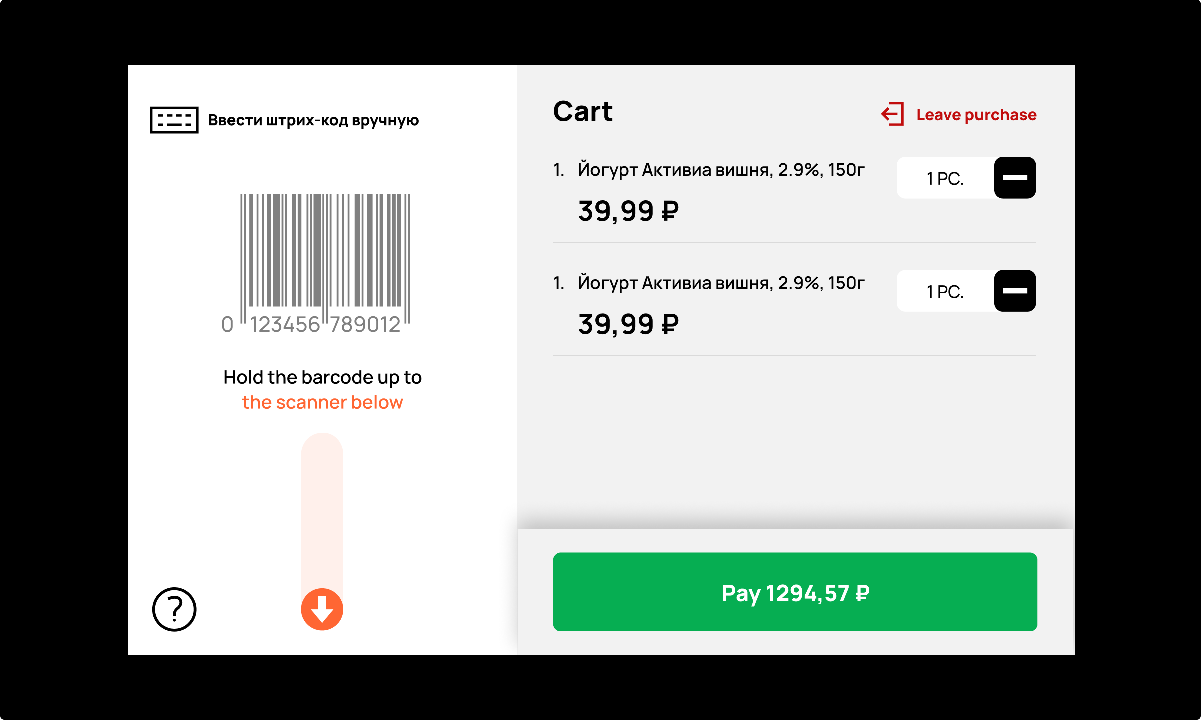 — inability to find the payment terminal or the barcode scanner immediately;
