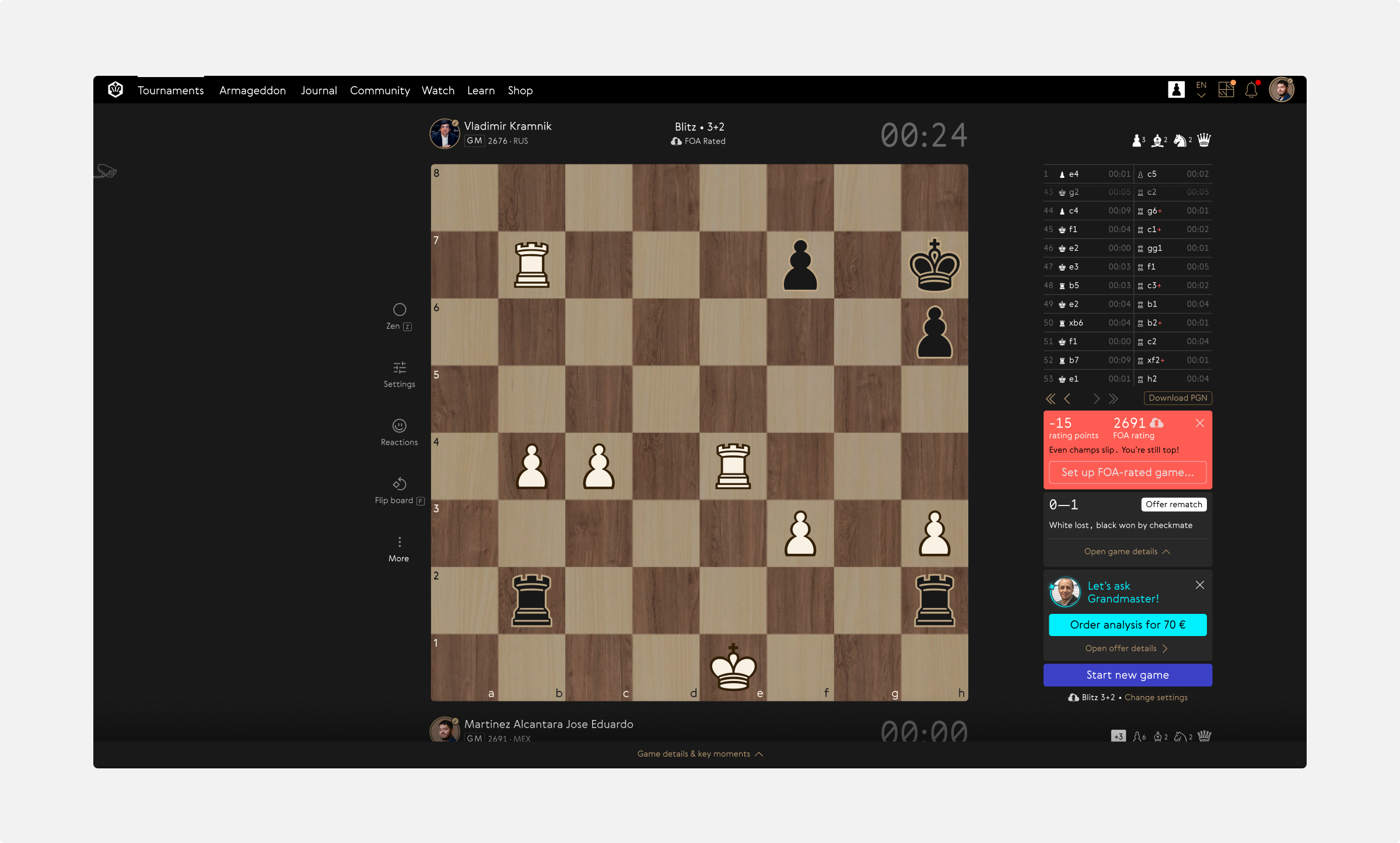 World Chess is an online platform where nearly 1 000 000 people play, watch, earn official FIDE Online Arena rating and get official FIDE ID for participating in tournaments: from casual games, to inclusive tournaments like Swiss Queens Wednesday, and legendary events like Clash of Blames, all in one place, right in the browser. When I joined, the product was already packed with features and the rebrand was quietly in motion. The challenge was to make the flows, layouts and features work together keeping the platform strong and ready for what’s coming next.